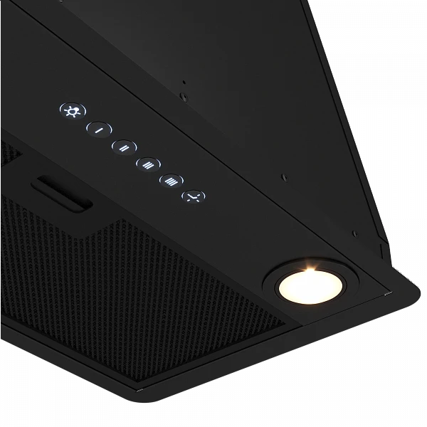 Вытяжка оснащена электронным кнопочным управлением. Доступно 4 скорости работы для точной регулировки интенсивности всасывания. Встроен антивозвратный клапан, предотвращающий проникновение запахов из вентиляционного канала обратно в помещение.