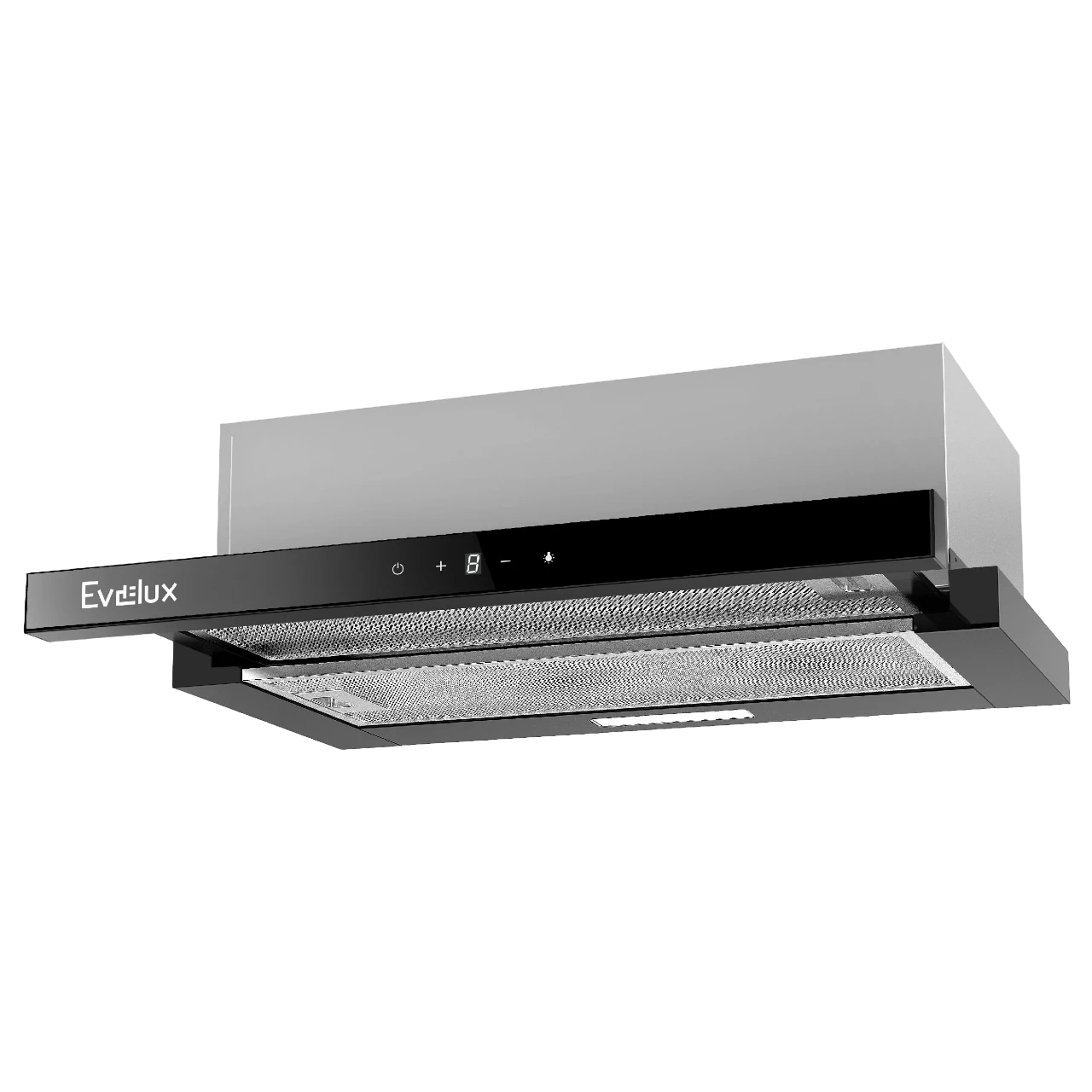 Встраиваемая вытяжка Evelux Bond 60 BG представляет собой современное решение для кухни в стиле High-Tech. Корпус выполнен в элегантном чёрном цвете, ширина устройства составляет 60 см, что идеально подходит для стандартных кухонных гарнитуров.