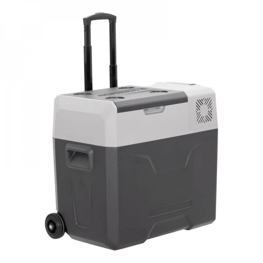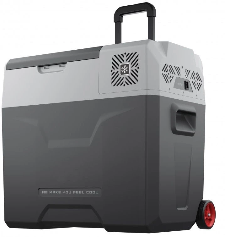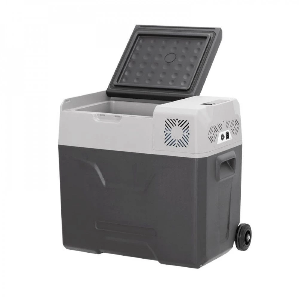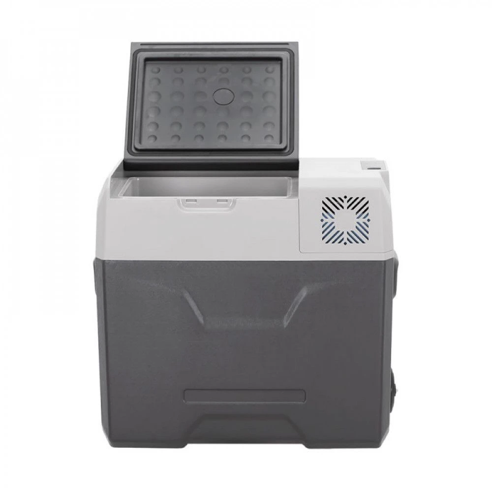 Корпус из качественного пластика обеспечивает герметичность и отличные изотермические свойства. Холодильник оснащён защитой от разряда аккумулятора, функцией быстрой заморозки и охлаждения, а также экономичным режимом для длительной работы от батареи. Удобная выдвижная ручка и колёса облегчают транспортировку вне транспортного средства.