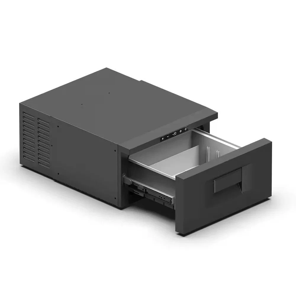 Маленький корпус скрывает в себе камеру общим объемом 20 литров способную обеспечить глубокую заморозку до минус 20 градусов. Высокоэффективный компрессор защищен от вибраций и наклонов поэтому прибор бесперебойно функционирует во время движения по неровным дорогам. Удобный выдвижной механизм обеспечивает быстрый доступ к содержимому без необходимости полностью доставать мини холодильник из ниши.