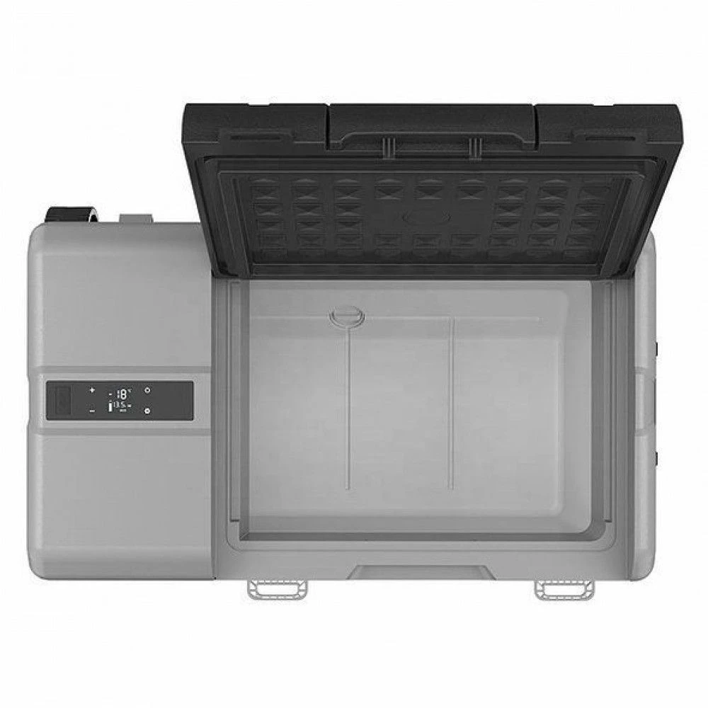 Модель работает от сети 12 вольт и 24 вольт а также может подключаться к обычной бытовой сети 220 вольт через отдельный адаптер. Это делает холодильник удобным для использования в автомобиле дома на даче или на природе. Компрессорная система обеспечивает быстрое охлаждение и тихую работу а качественная термоизоляция помогает дольше сохранять нужную температуру внутри камеры.