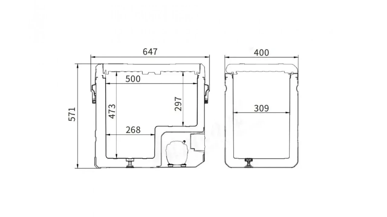 Объем 60 литров позволяет разместить напитки, продукты, полуфабрикаты и все необходимое для поездки на несколько дней. Это хороший выбор, если нужен не мини холодильник, а компактная и практичная модель с большим литражом. Внутреннее пространство удобно для хранения и легко очищается после использования, а сливная пробка помогает быстро удалить воду после мойки или разморозки.