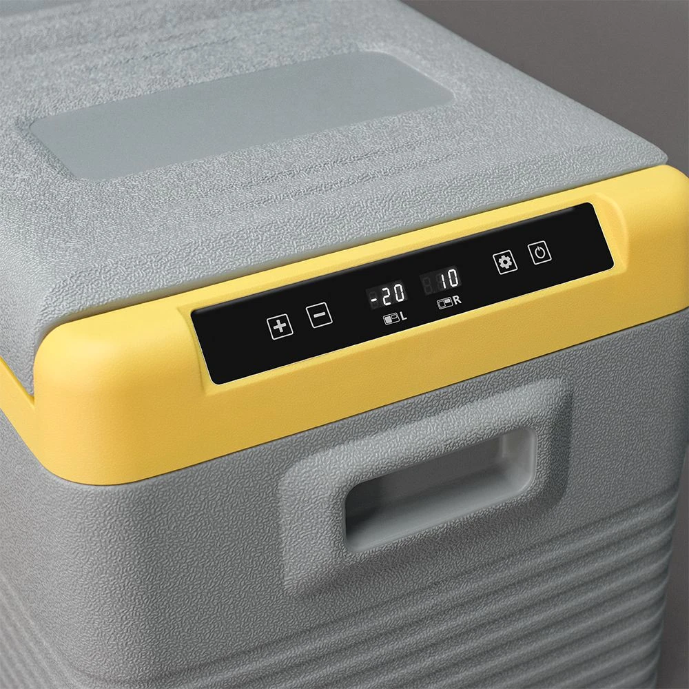 Внутренний литраж составляет 35 литров и разделен на две зоны. Морозильная камера поддерживает охлаждение до минус 20 градусов а холодильный отсек сохраняет температуру на уровне плюс 5 градусов. Расположение испарителя на всех четырех стенках корпуса гарантирует быстрое распределение холода. Высокая эффективность работы достигается за счет тихого компрессора который защищен от перегрева и сохраняет работоспособность даже при наклоне автомобиля до 40 градусов.