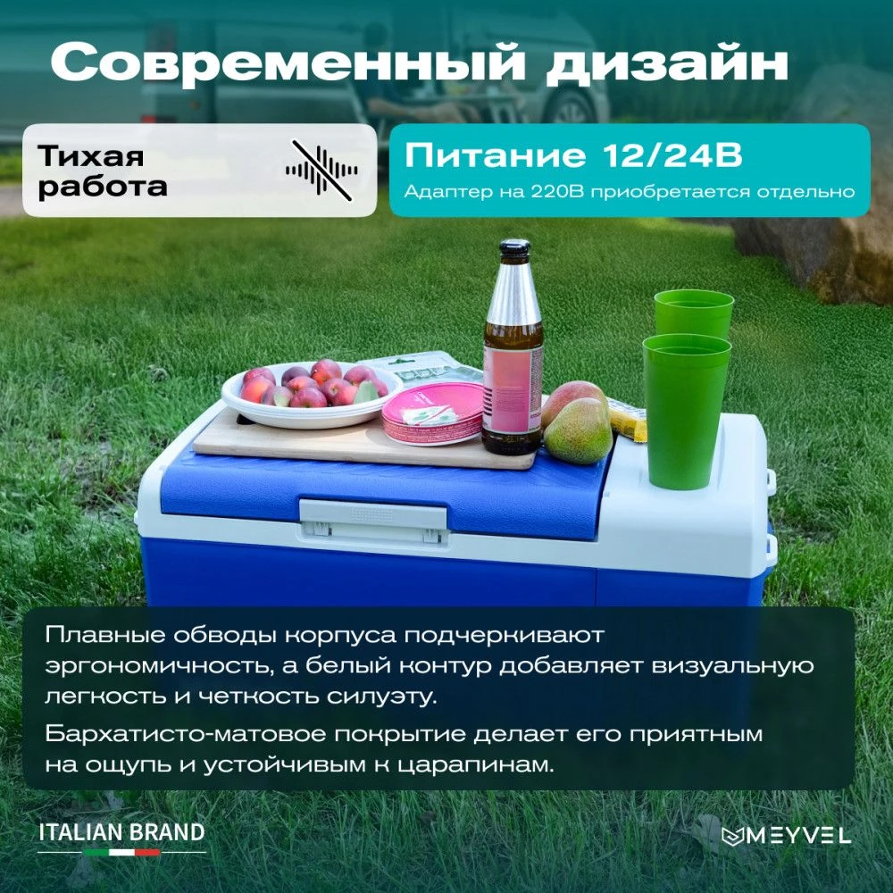 Уровень шума не превышает 35 дБ, поэтому холодильник не создает лишнего дискомфорта во время поездки, отдыха или ночной остановки. Для безопасной эксплуатации предусмотрена защита от разряда аккумулятора автомобиля, что особенно важно при длительном использовании в дороге.