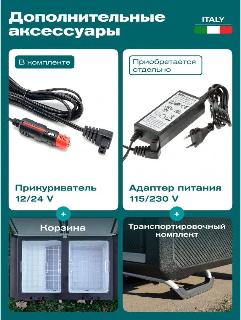 Устройство работает от прикуривателя 12 и 24 В что делает его удобным для использования в машине. При подключении через отдельный адаптер он может работать и от сети 220 В. Температурный диапазон от +20 до -20 °C позволяет охлаждать продукты или использовать автохолодильник для глубокой заморозки. Это особенно полезно в поездках когда важно сохранить свежесть еды и напитков на долгое время.