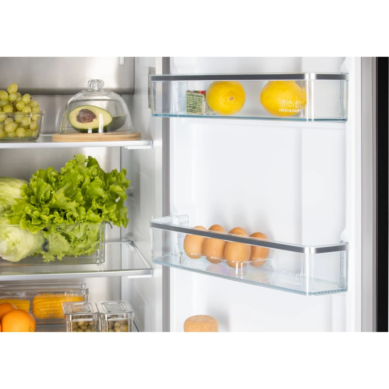 Наполнение холодильной камеры2 х полки, 1 х ящик для овощей/фруктов, 2 х лотка для яиц (х 6 шт.)