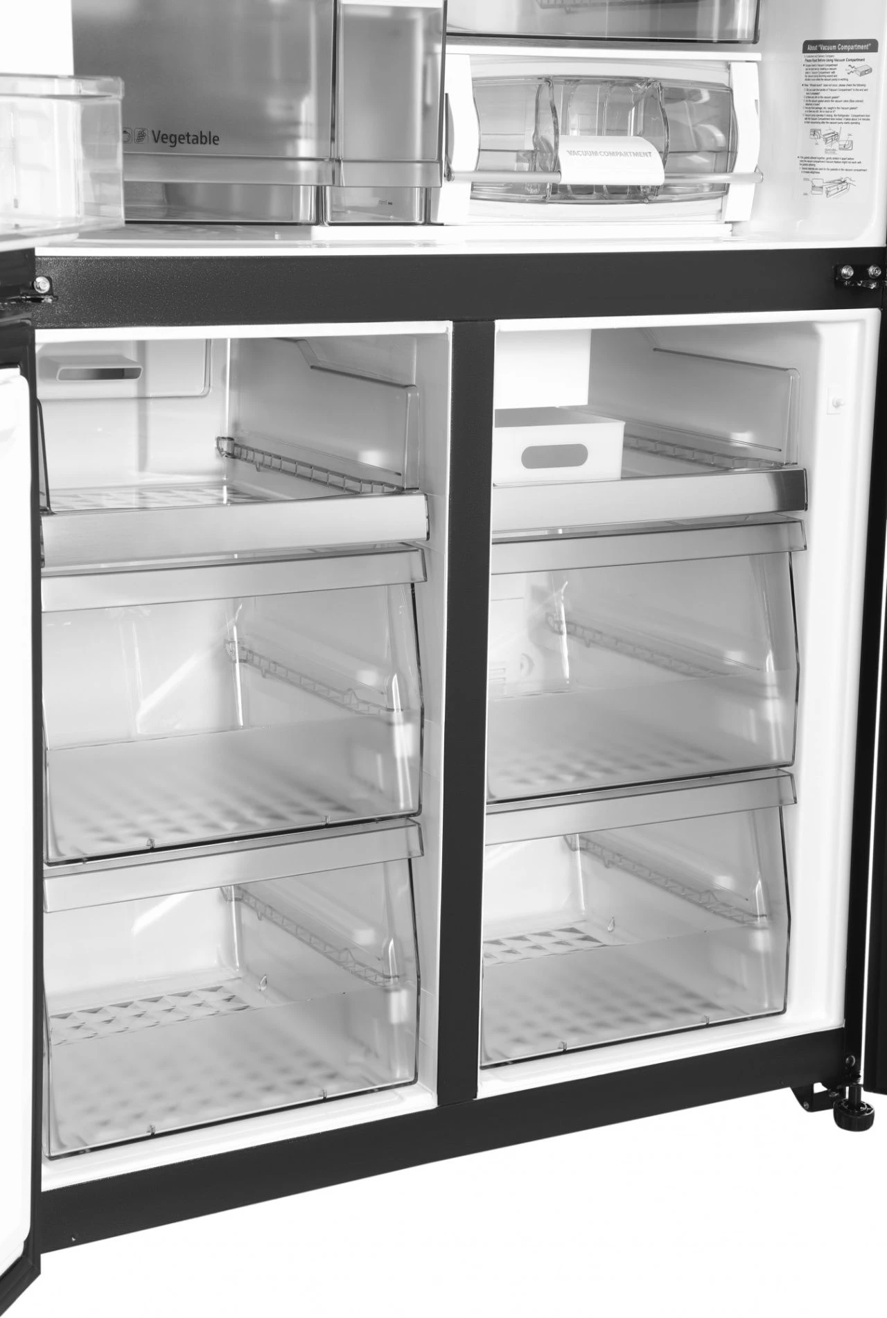 Внутри всё продумано, места очень много, кастрюли любые залетают без проблем. Работает тихо, его вообще не слышно, даже ночью. Выглядит стильно, на кухне смотрится дорого. Очень доволен, что не пожалел денег, холодильник отрабатывает на все сто! Всем советую, кто устал выбрасывать испорченную еду.