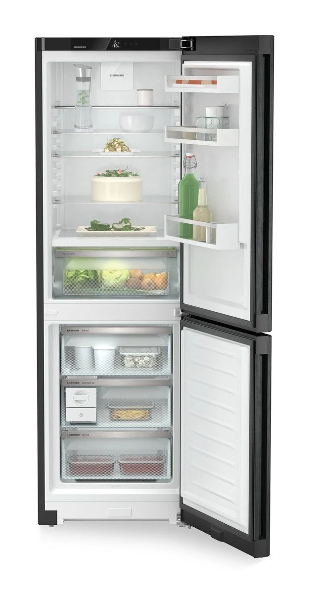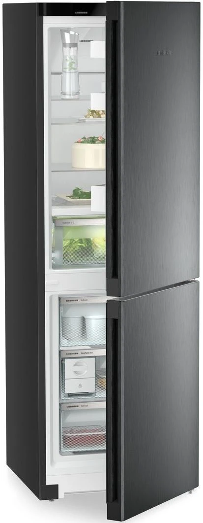 Liebherr CBNbda 5223 это домашний холодильник с морозильником для кухни в полноразмерном формате. Корпус выполнен из стали а фронт из нержавейки в оттенке черная сталь поэтому модель выглядит аккуратно и легко вписывается в современный интерьер. При высоте 185.5 см ширине 59.7 см и глубине 67.5 см холодильник удобно разместить отдельно либо установить в нишу благодаря InteriorFit и вентиляции через лицевую панель.