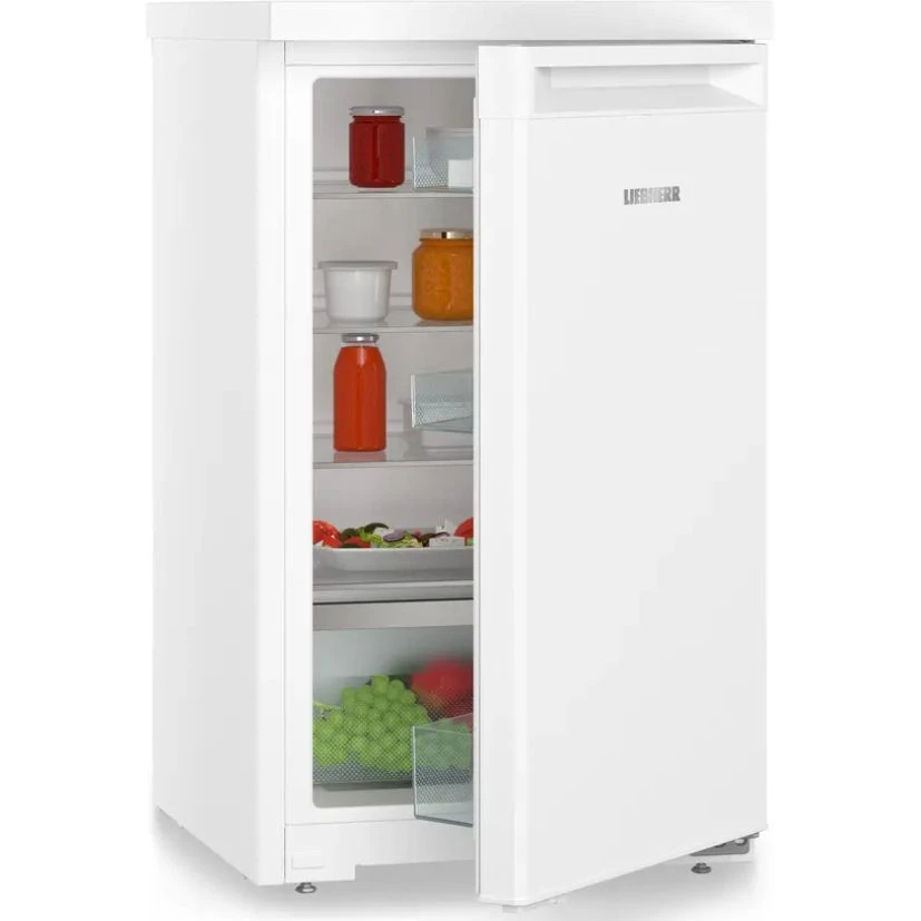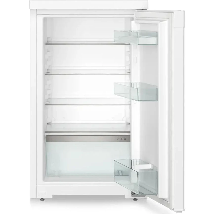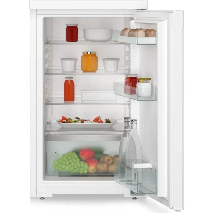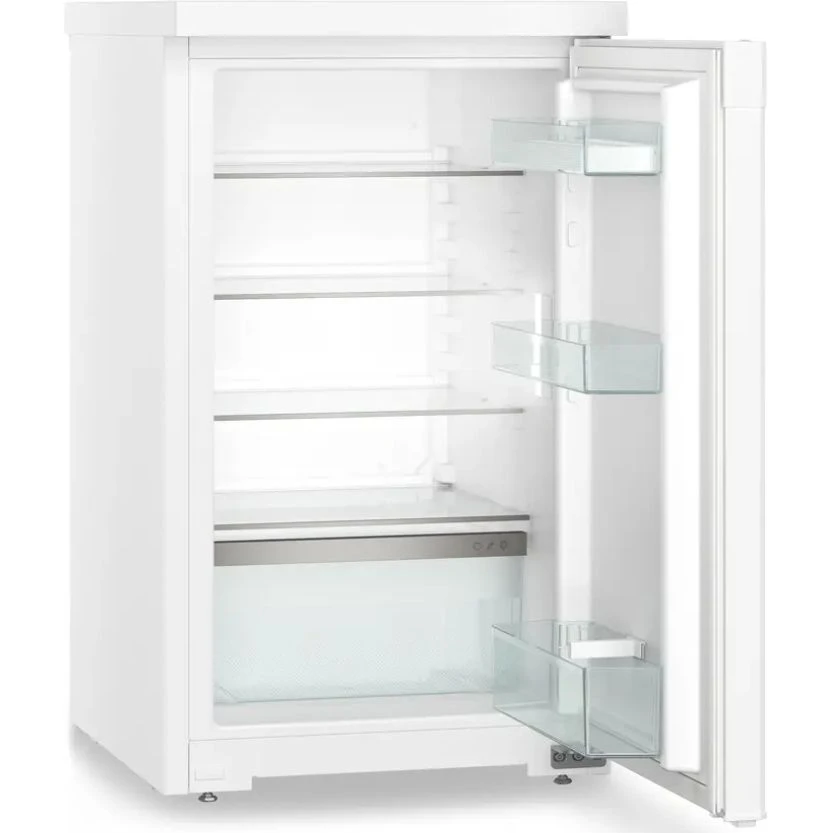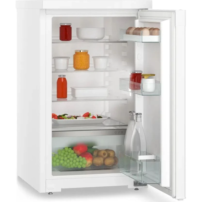 Холодильник Liebherr RD 1200 представляет собой компактный однокамерный прибор болгарской сборки из серии Pure (класс Pure/Comfort) с двухлетней гарантией. Корпус выполнен из стали с белой стальной дверцей, обеспечивая надежность и аккуратный внешний вид для домашней кухни. Полезный объем составляет 110 литров (брутто 113 литров), что идеально подходит для небольшой семьи или дополнительного хранения. Внутри предусмотрена удобная компоновка: четыре стеклянные полки с регулировкой высоты трех из них, вместительная овощная емкость, три пластиковые полки на дверце с отделением для бутылок, двумя отсеками для консервов и подставкой для яиц.