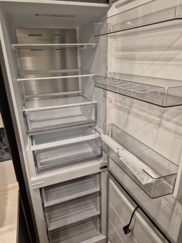 Металлическая панель, приятный бонус. После того как дети по десять раз за час открывают холодильник, температура быстро восстанавливается. Зона Fresh Zone отлично справляется с мясом и рыбой, продукты действительно дольше сохраняются.