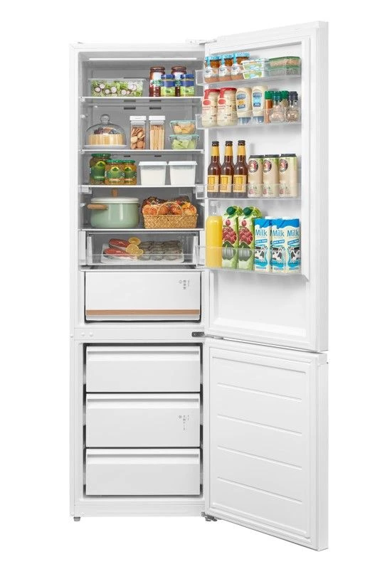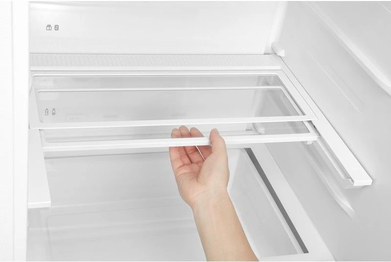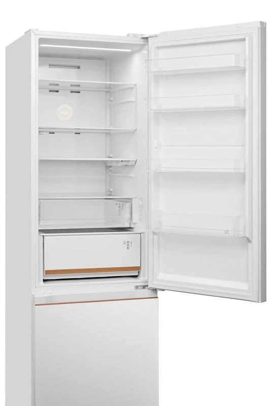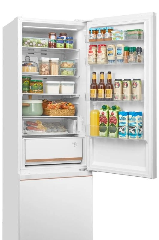 Общий полезный объём составляет 455 л: холодильная камера — 321 л, морозильная — 134 л. Это отличное решение для большой семьи. Внутри предусмотрены прочные стеклянные полки, включая складную полку, глубокие дверные карманы и зону свежести, которая поддерживает оптимальную влажность для овощей и фруктов.