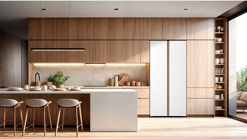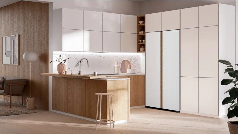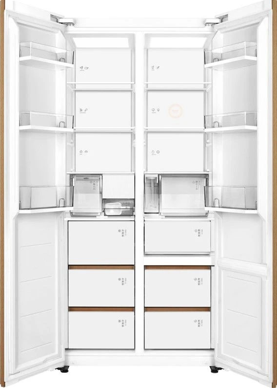 Высота — 1910 мм, ширина — 910 мм, глубина — 600 мм — при вместимости Side-by-Side модель остаётся достаточно компактной для установки в большинстве кухонь.