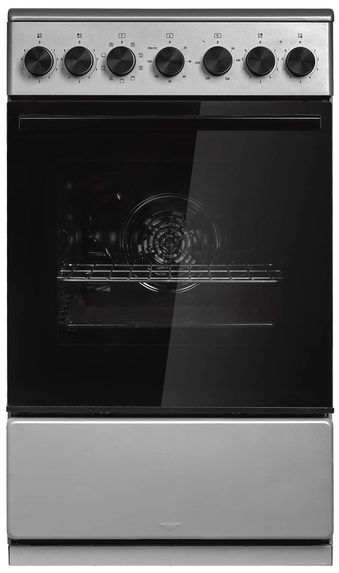 Объем духовки составляет 59 л, предоставляя возможность для одновременного приготовления нескольких блюд. Дверца сделана из двухслойного стекла, которое способствует хорошей теплоизоляции. Яркая подсветка мощностью 25 Вт позволяет визуально контролировать процесс готовки без открывания камеры. Для обеспечения равномерного температурного режима и повышения эффективности приготовления в духовке реализована система конвекции мощностью 2000 Вт, работающая от отдельного кольцевого нагревателя.