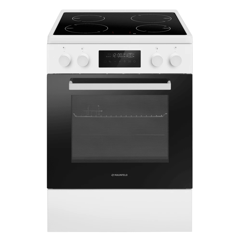 Каждая конфорка электрической плиты Maunfeld MIC611W01TD имеет индикацию остаточного тепла. Это собственное получение ожогов рук во время очистки поверхностей. На панели управления расположены комбинированные элементы и дисплей, который отображает время. Внутренняя панель духового шкафа покрыта эмалью для легкой очистки, что позволяет удалить остатки пищи и брызги жира. Поверхность варочной панели изготовлена из стеклокерамики высокой прочности. Материал устойчив к изнашиванию и ударам, что продлевает срок эксплуатации плит.