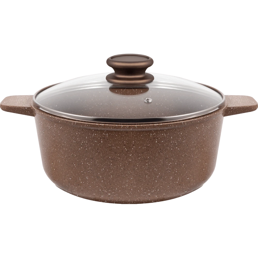 Пять слоев безопасного антипригарного покрытия, не меняет вкус и аромат еды. Кастрюля с эффектным мраморным покрытием и современной ручкой в универсальном цвете, будет отлично сочетаться с любой кухней.
