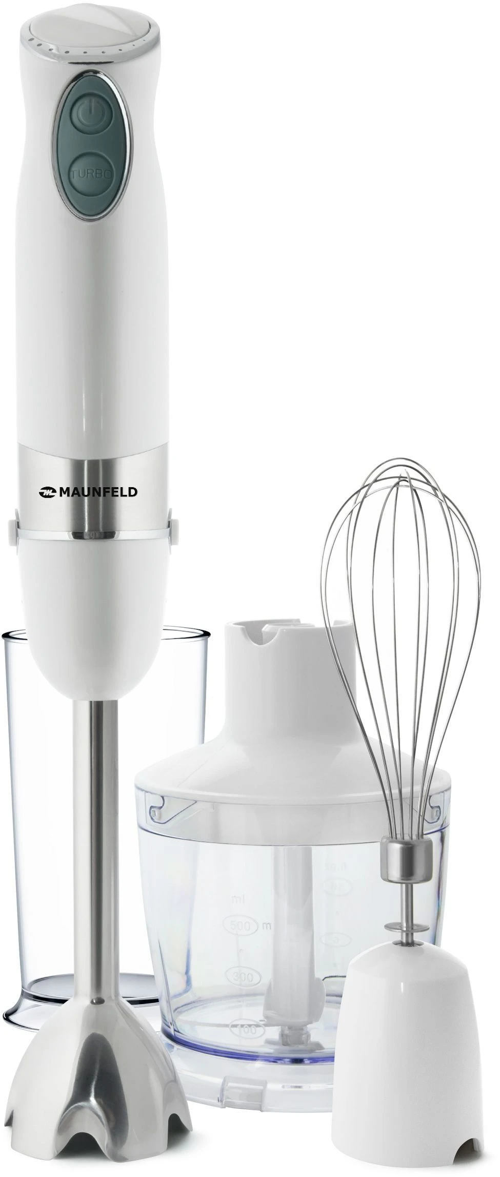 Этот погружной мультиблендер, мощностью 1000 Вт поставляется в комплекте с целым арсеналом кухонных аксессуаров. Погружная насадка блендера выполнена из нержавеющей стали, корпус изготовлен из высокотехнологичной ослепительно белой пластмассы.