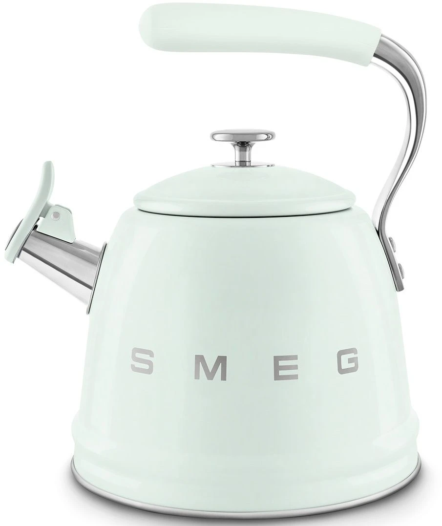 SMEG CKLW2001PG представляет собой качественный чайник со свистком в ретро стиле 50 х годов. Эта новая надежная модель сочетает классический дизайн и современные технологии для кухни. Объем чайника составляет 2.3 л что позволяет готовить чай или кофе для всей семьи за один раз. Габариты модели ширина 243 мм высота 277 мм глубина 205 мм вес 1.34 кг.
