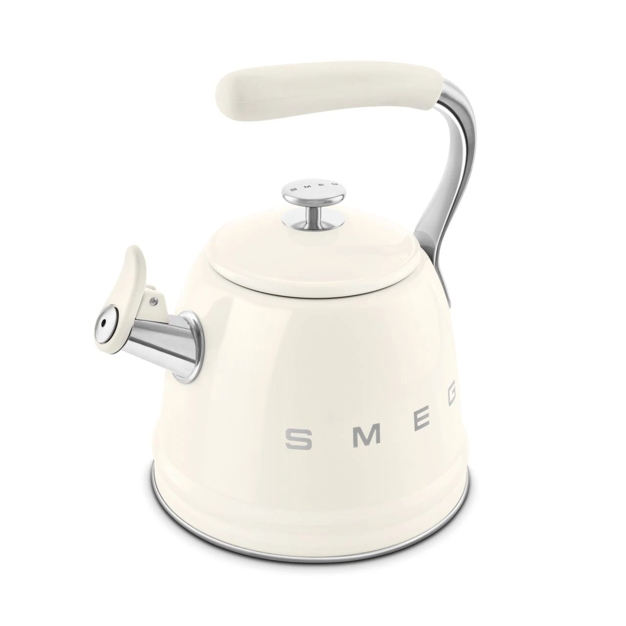 Чайник SMEG WKF01CR представляет собой новое решение для кухни которое объединяет эстетику пятидесятых годов и современные стандарты качества. Данная модель относится к категории наплитных чайников и выполнена из прочной нержавеющей стали с эмалированным покрытием кремового цвета. Качественная сборка и надежная конструкция делают прибор долговечным элементом интерьера.