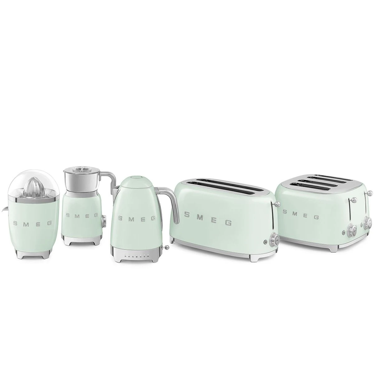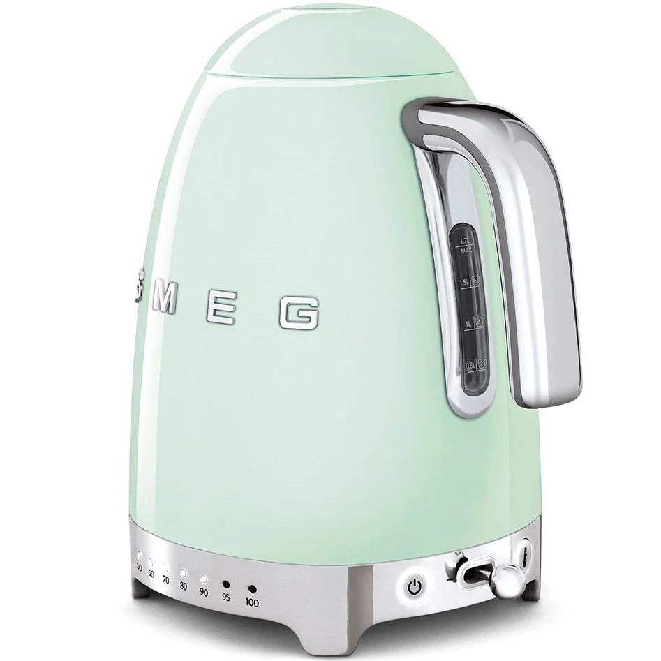 Электрический чайник Smeg KLF04PGEU из коллекции стиль 50 х выполнен из нержавеющей стали в пастельно зеленом цвете. Это новая современная модель для кухни, которая помогает быстро готовить чай кофе и другие горячие напитки дома и в офисе.