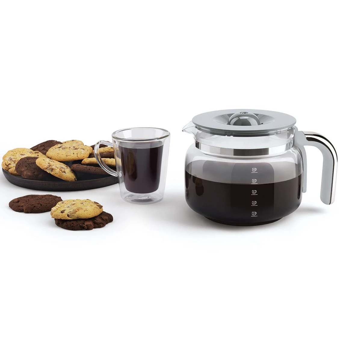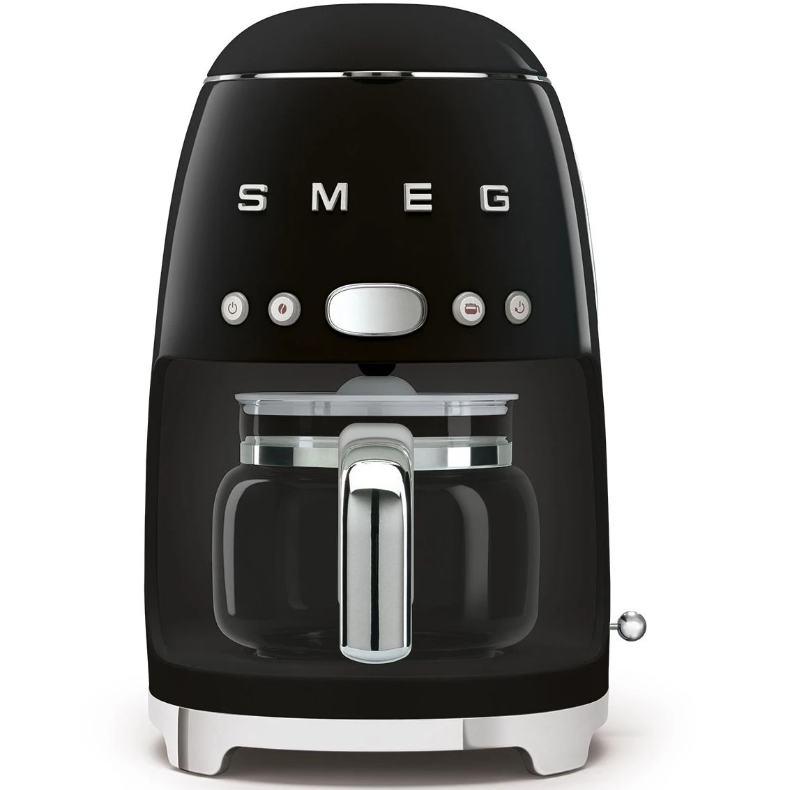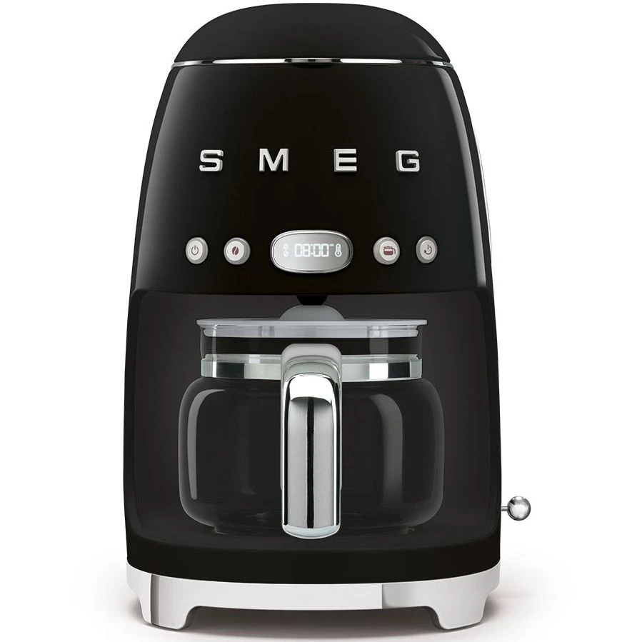 Капельная кофеварка Smeg DCF02BLEU представляет собой стильное решение в эстетике пятидесятых годов. Черный цвет корпуса из нержавеющей стали и пластика позволяет прибору гармонично вписаться в современный интерьер. Это один из лучших вариантов для кухни где ценится сочетание ретро дизайна и современных технологий. Модель оснащена удобным LED дисплеем и кнопками для точной настройки параметров приготовления любимого напитка.