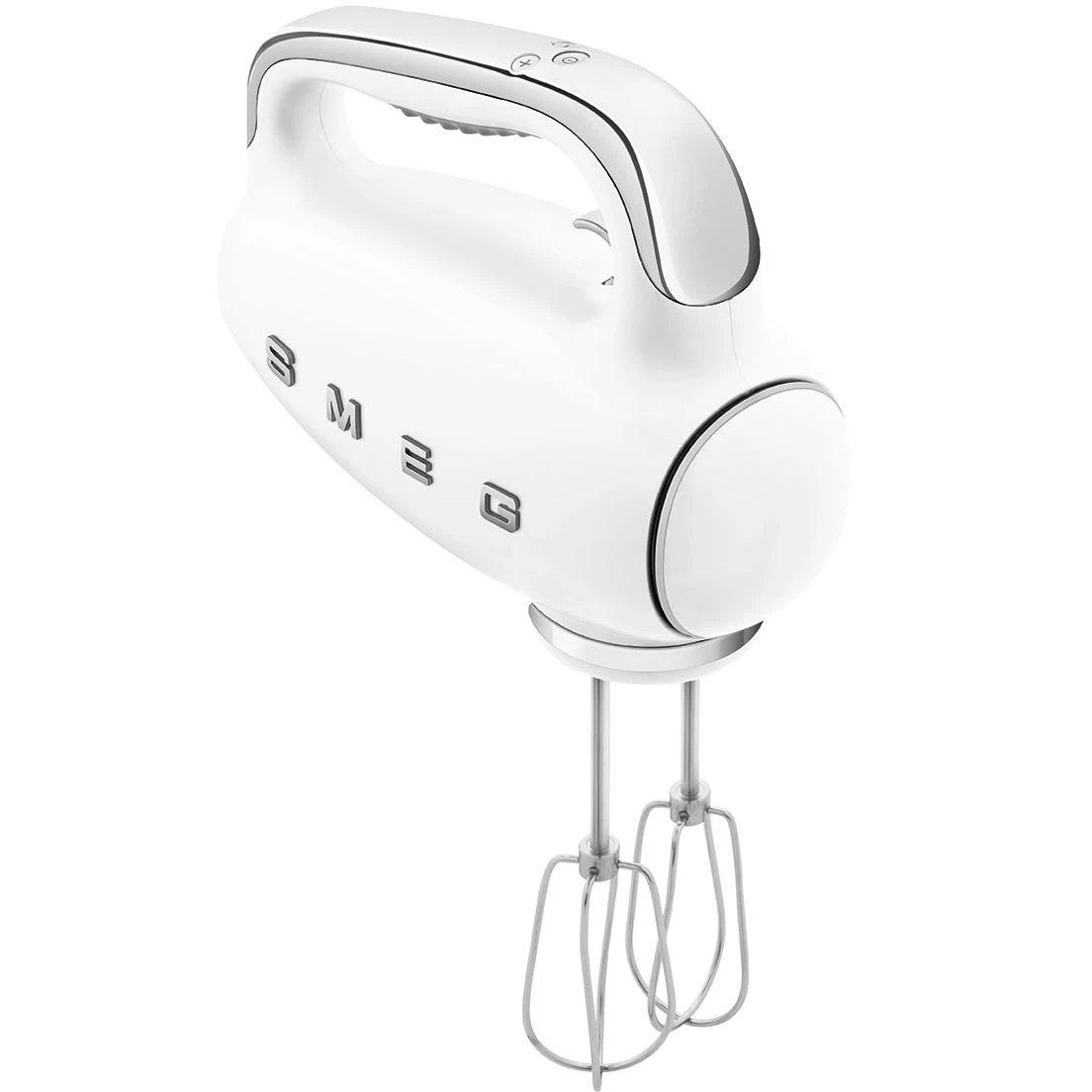 Ручной миксер SMEG HMF01WHEU в белом цвете из коллекции Стиль 50-х годов подойдет для ежедневной готовки и аккуратно впишется в современную кухню. Прибор новый, качественный и надежный, подходит для взбивания, смешивания и замешивания теста дома.
