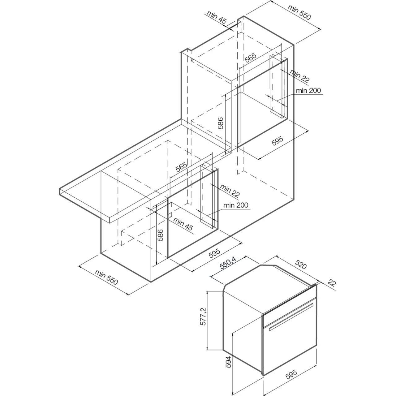Размер ниши для встраивания586/595/550