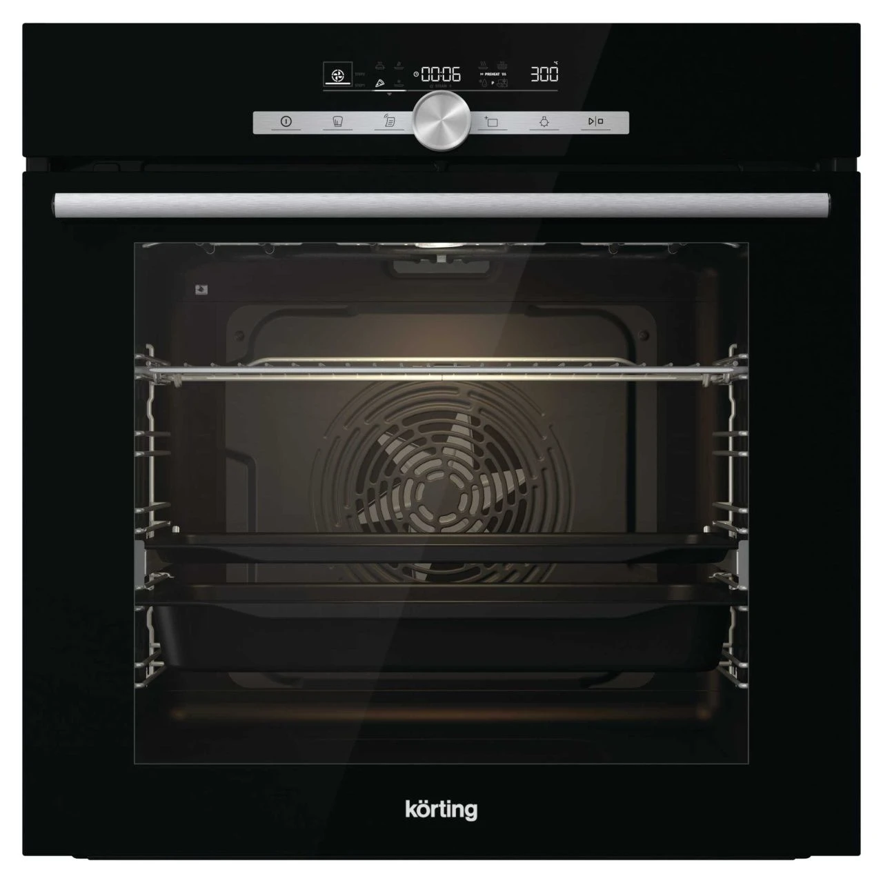 Электрический духовой шкаф Korting OKB 9951 CESN представляет собой современное решение для кухни, которое объединяет эстетику черного стекла и нержавеющей стали с передовыми технологиями. Модель шириной 60 см обладает внушительным объемом 77 литров, что позволяет эффективно готовить крупные блюда для всей семьи. Управление осуществляется через интуитивно понятный сенсорный дисплей и электронный поворотный регулятор, обеспечивая полный контроль над процессом.