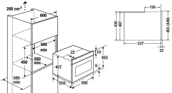 Размер ниши для встраивания560/450/550