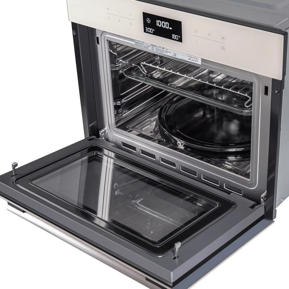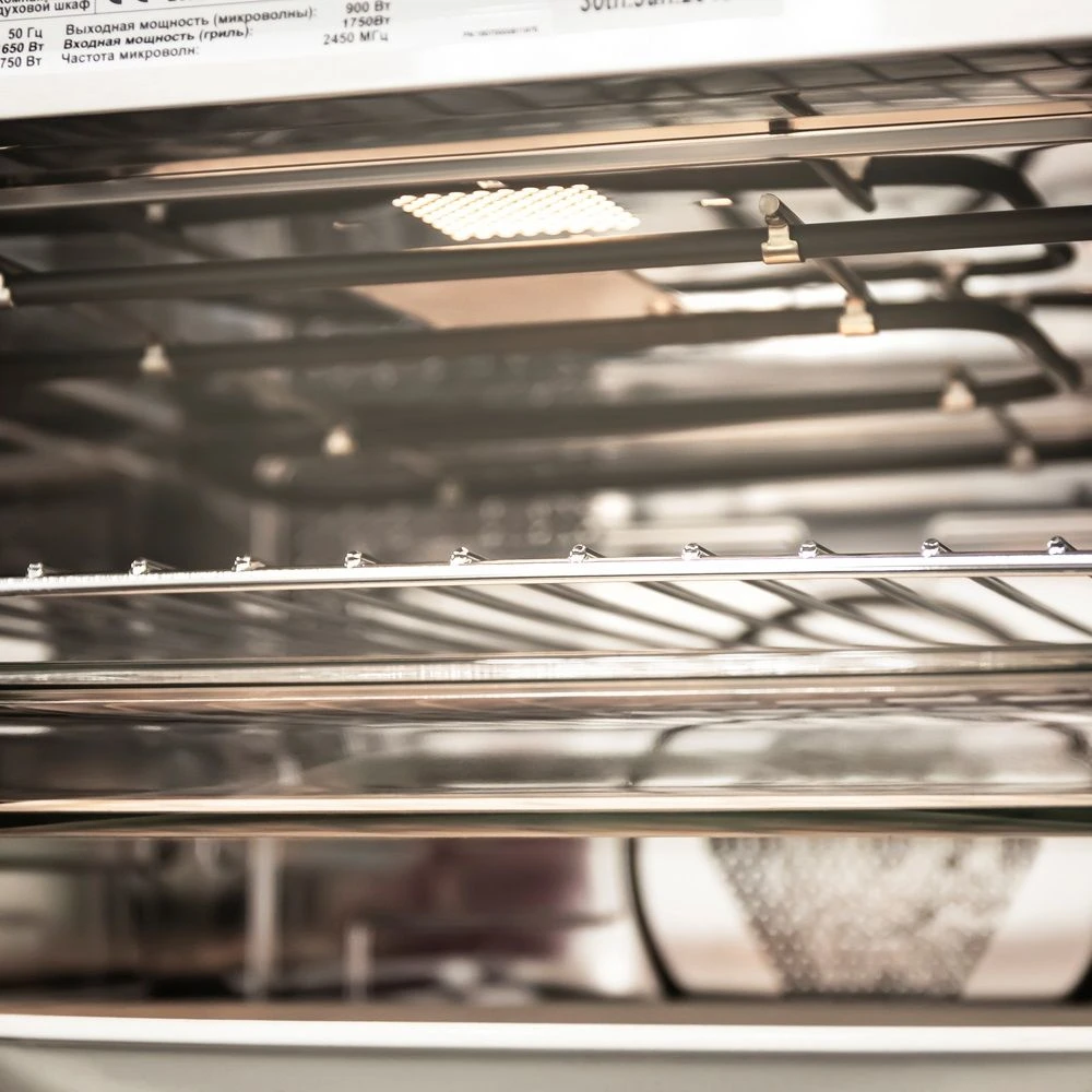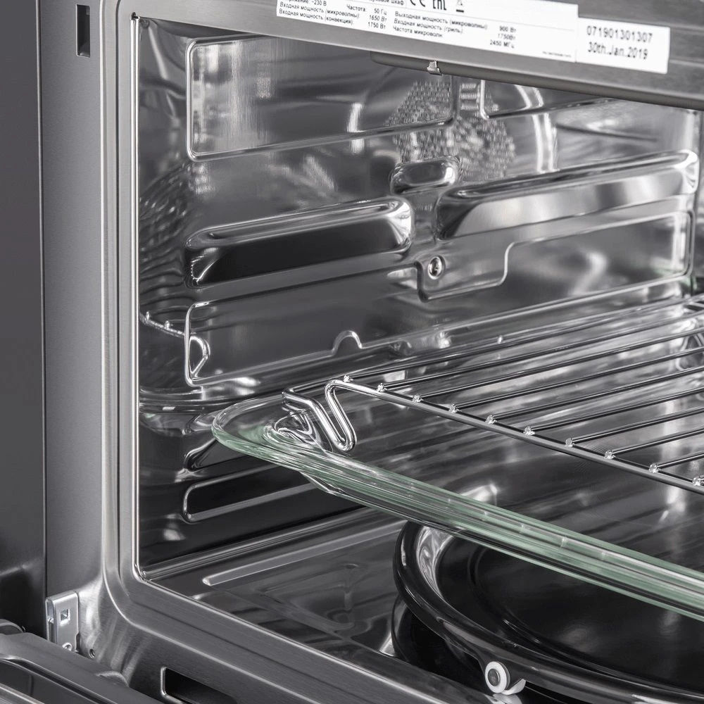 Таймер прекращает нагрев по прошествии заданного времени, что снижает вероятность пригорания блюда. Технология «Холодный фронт» и тангенциальное охлаждение обеспечивают быстрое отведение тепла. Это предотвращает нагревание корпуса и лицевой панели, что снижает вероятность получения ожогов и повреждения кухонной мебели. Внутренняя поверхность отделения произведена из нержавеющей стали. Материал устойчив к появлению царапин и коррозии, что упрощает уход за устройством.