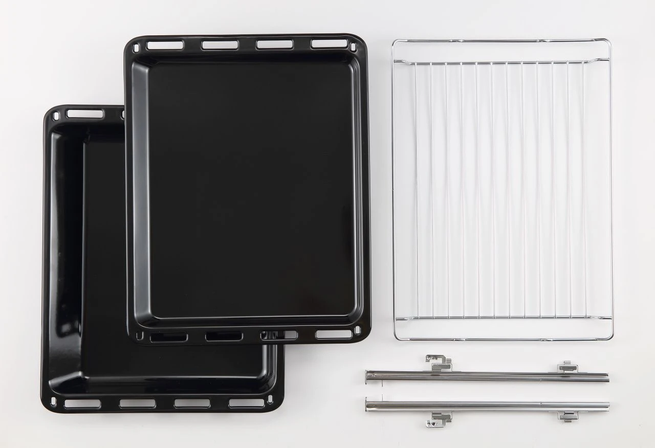 В комплекте1 х противень глубиной 45 мм, 1 х решетка с функцией Stop