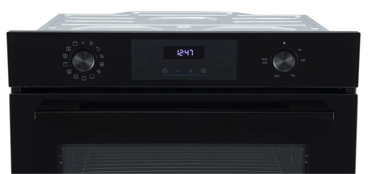 Для выбора настроек духовой шкаф снабжен сенсорным программатором и ярким LED-дисплеем. Можно легко планировать процесс приготовления, используя отсрочку запуска и таймер с максимальным временем работы до десяти часов, который автоматически отключит прибор по его окончании. Система управления делает использование устройства простым и интуитивно понятным.
