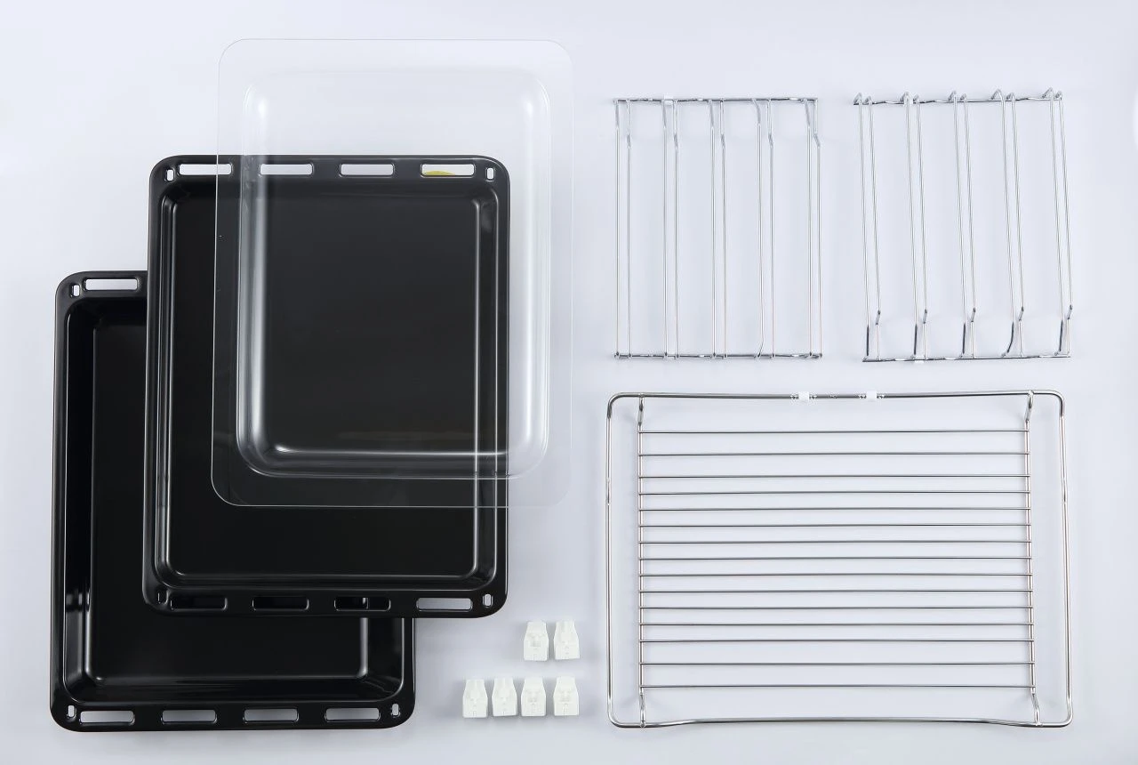 Производитель позаботился о том, чтобы у вас было все необходимое для начала работы. В комплект поставки входят два противня разной глубины (28 мм и 45 мм), а также решетка с функцией Stop, которая надежно фиксируется при выдвижении. Фиксированная хромированная решетка внутри камеры предлагает пять уровней размещения аксессуаров, что позволяет с легкостью готовить блюда разного объема и одновременно использовать несколько уровней. Внутреннее покрытие из термостойкой эмали легкой очистки минимизирует ваши усилия по поддержанию чистоты прибора.