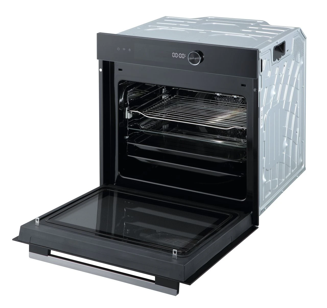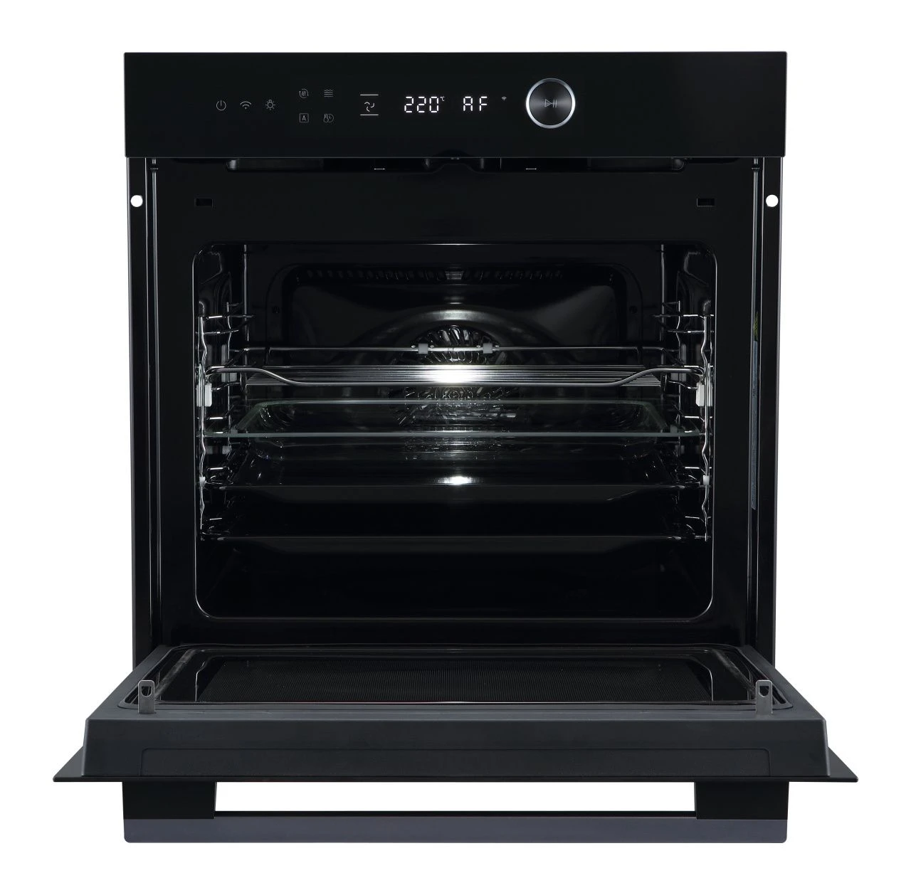 Прибор обладает компактными для своей функциональности размерами и предназначен для встраивания в стандартную нишу шириной 60 см. Его лаконичный черный дизайн с сенсорной панелью управления и темно-серой фурнитурой органично впишется в современный кухонный гарнитур. Несмотря на внешнюю сдержанность, внутреннее пространство впечатляет: объем камеры составляет 72 литра, что достаточно для одновременного приготовления нескольких блюд. Безопасность и комфорт обеспечены за счет четырехслойного стекла дверцы, которое остается холодным снаружи, а также системы принудительного охлаждения, которая не позволяет корпусу перегреваться. Съемная дверца значительно упрощает процесс очистки.