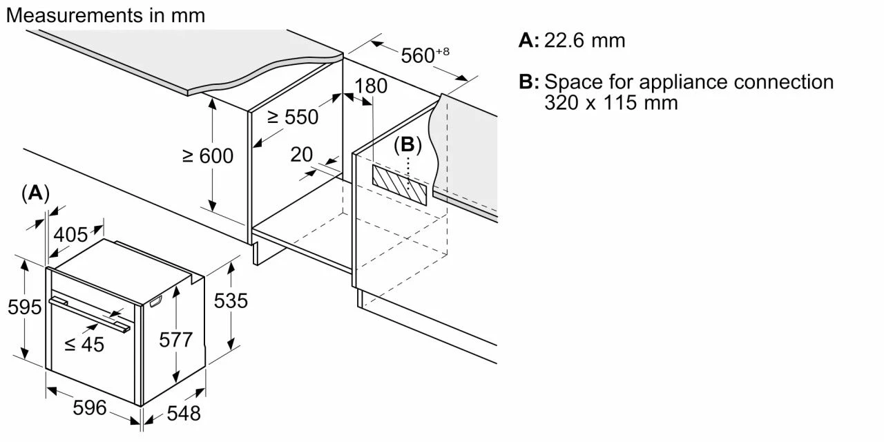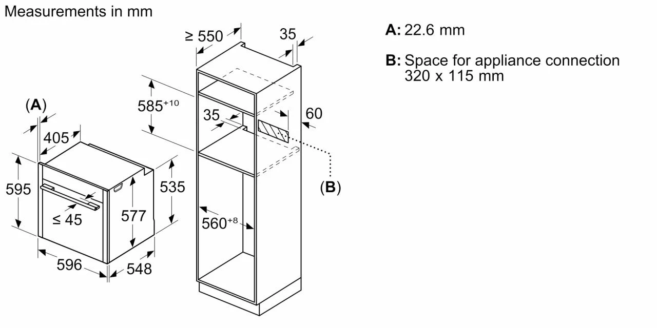 Размер ниши для встраивания585-595/560-568/550