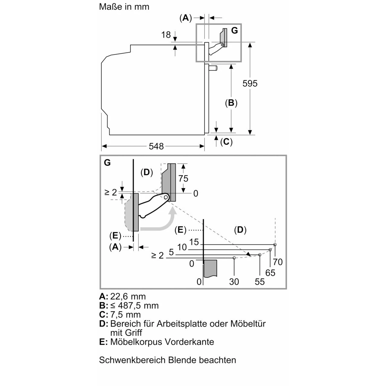 Размер ниши для встраивания585-595/560-568/550