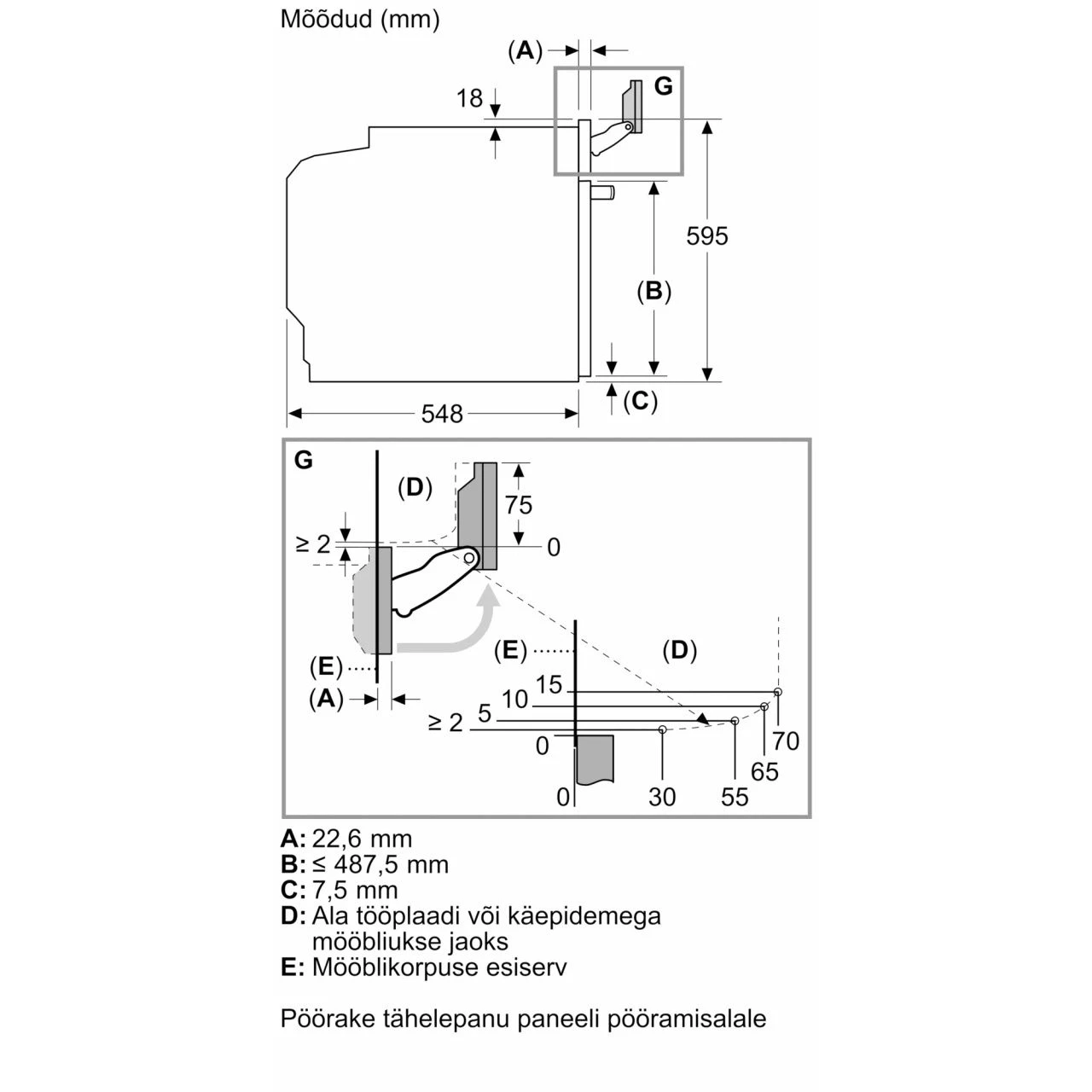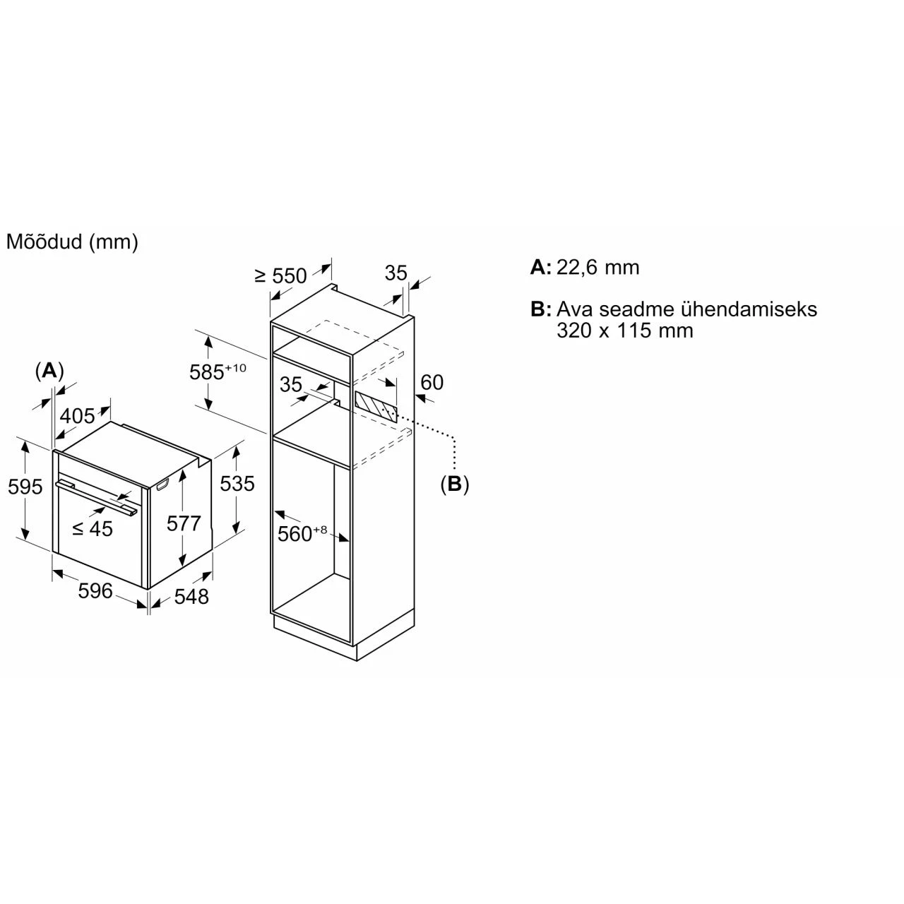 Размер ниши для встраивания585-595/560-568/550