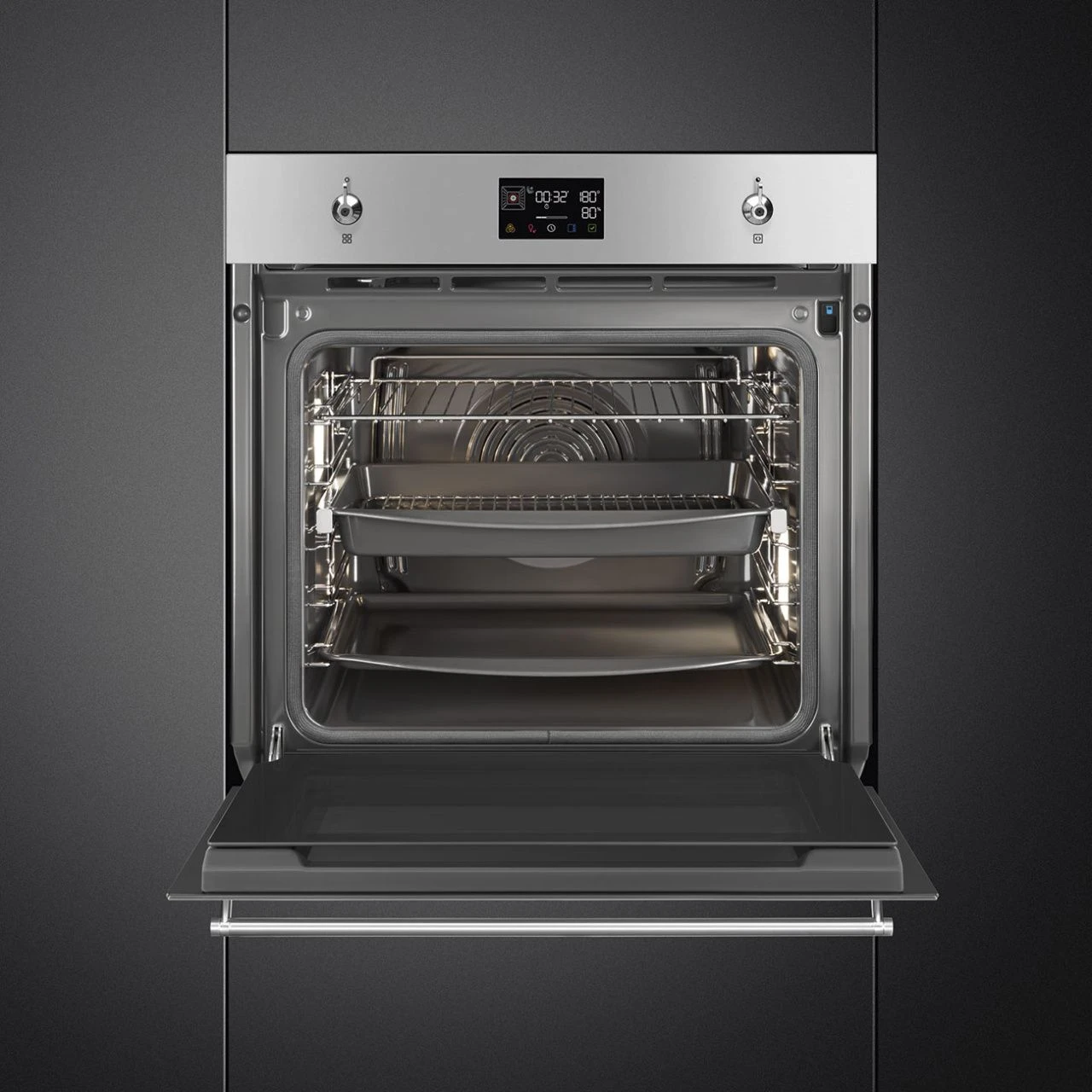 Электрический духовой шкаф Smeg SOP6302S2PX из коллекции Classica представляет собой современный встроенный модуль для кухни, который сочетает в себе элегантный стиль и передовые технологии. Корпус выполнен в цвете нержавеющая сталь, что позволяет легко интегрировать устройство в любой интерьер. Внутренняя камера имеет внушительный объём 68 литров, предоставляя достаточно пространства для реализации любых кулинарных идей. Мощность подключения составляет 3000 Вт, что обеспечивает быстрый нагрев и стабильную работу на протяжении всего времени приготовления.