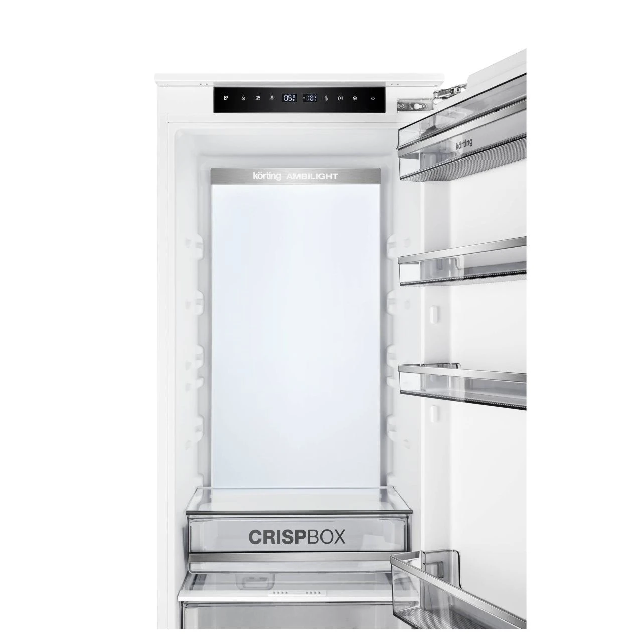 Особенностью модели является внутренняя задняя стенка холодильной камеры, полностью покрытая LED-панелью. Это обеспечивает равномерное освещение всех полок и полный обзор даже дальних уголков.