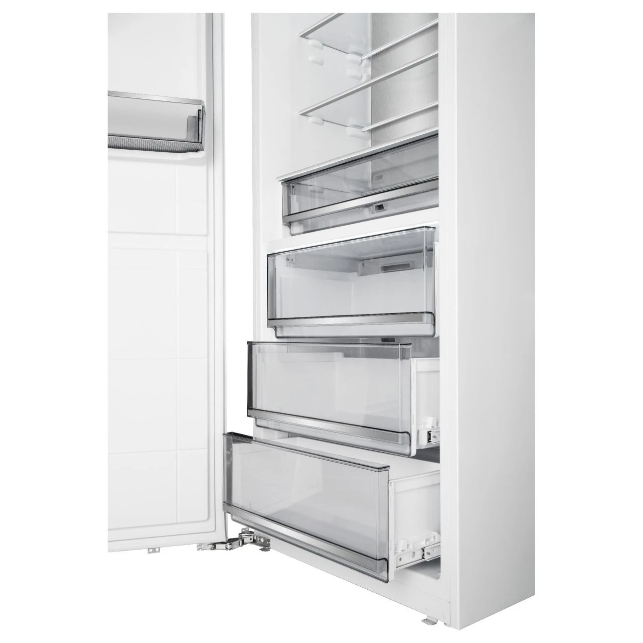 Задняя стенка Cold Metal способствует быстрому и равномерному охлаждению продуктов. LED-освещение создаёт яркое и равномерное освещение внутреннего пространства. Камера оснащена 8 контейнерами для удобного хранения продуктов.
