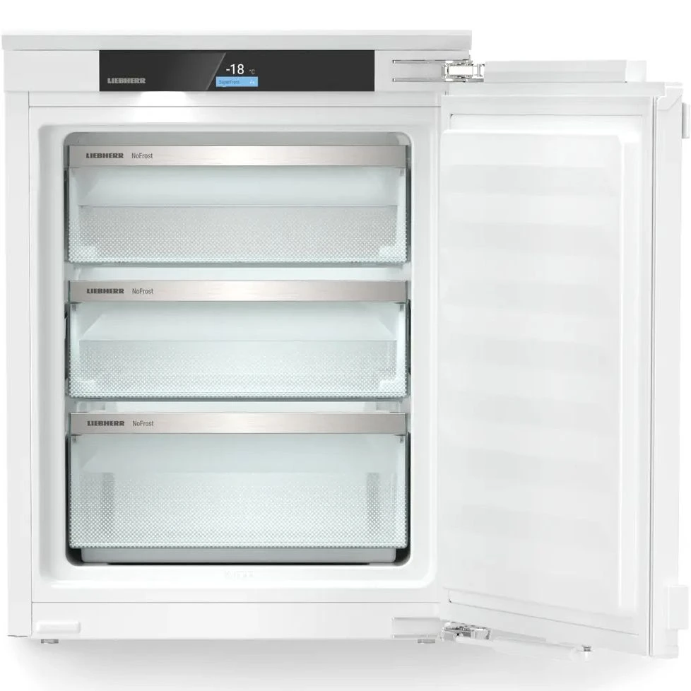 Морозильная камера Liebherr IFNbi 3553 сочетает компактность и премиальный стиль для современной домашней кухни. Корпус выполнен из прочной стали с возможностью установки мебельного фасада системой Door on Door и скрытой ручкой. Вес фасада до 14 кг обеспечивает надежное крепление. Габариты 712 х 559 х 546 мм подходят для ниши 714 до 730 х 550 до 560 х 550 мм с опцией монтажа под столешницу. Дверь с правым упором перевешивается на левую сторону с углом открытия до 115 градусов.
