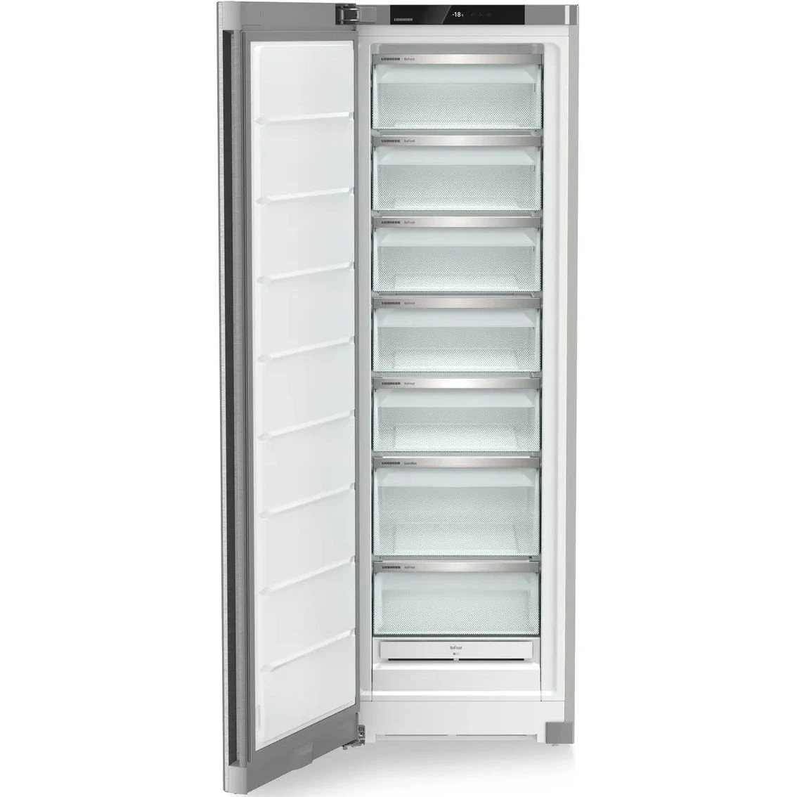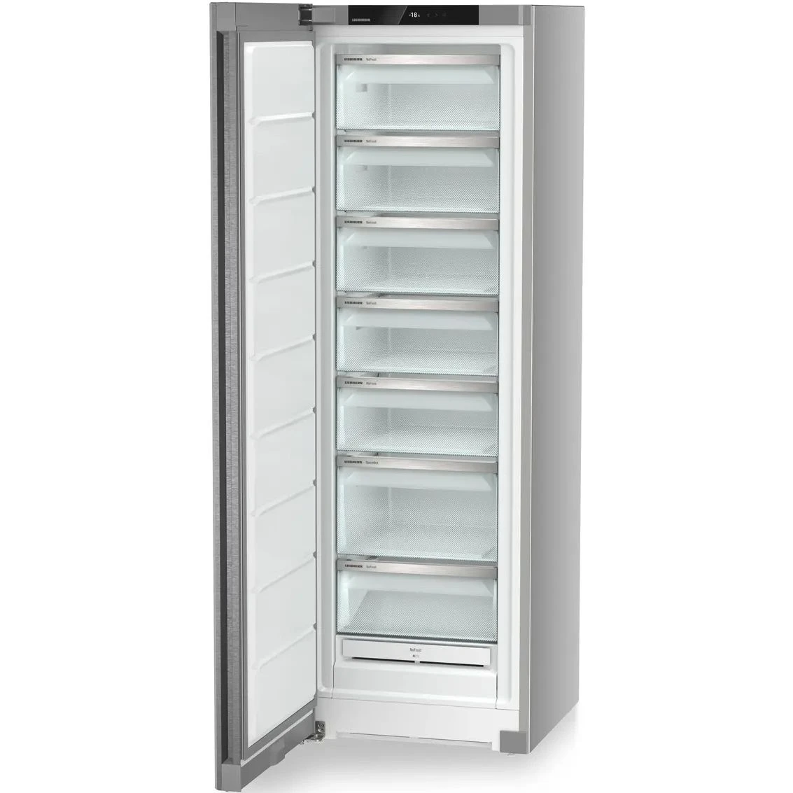 Этот отдельностоящий серебристый морозильник высотой 185.5 см и шириной 59.7 см станет идеальным решением для современной кухни. Стальной фронт со специальной обработкой против отпечатков пальцев сохраняет эстетичный вид без лишних усилий. Благодаря концепции InteriorFit и продуманной вентиляции цоколя прибор можно установить вплотную к мебели без зазоров. Конструкция ручки EasyOpen обеспечивает легкое открывание даже при полной загрузке.