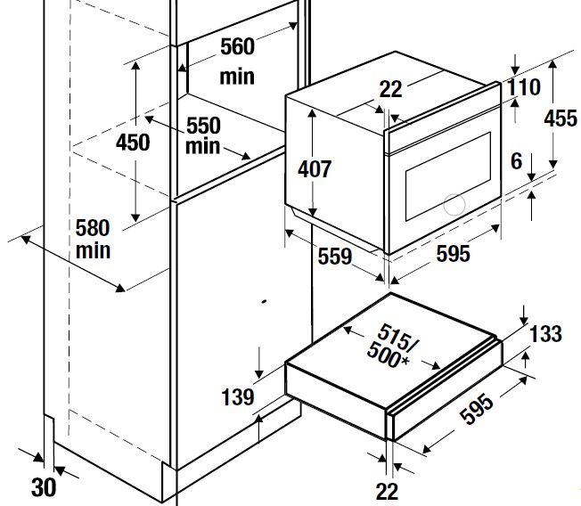 Размер ниши для встраивания≈ 560/595/мин.550 мм вкл. высоту прибора 45 см