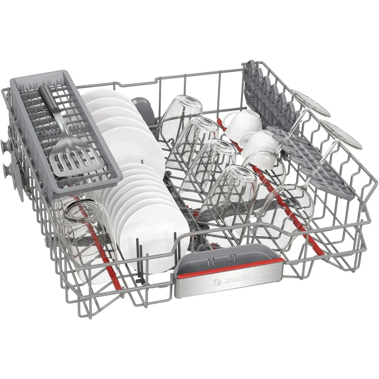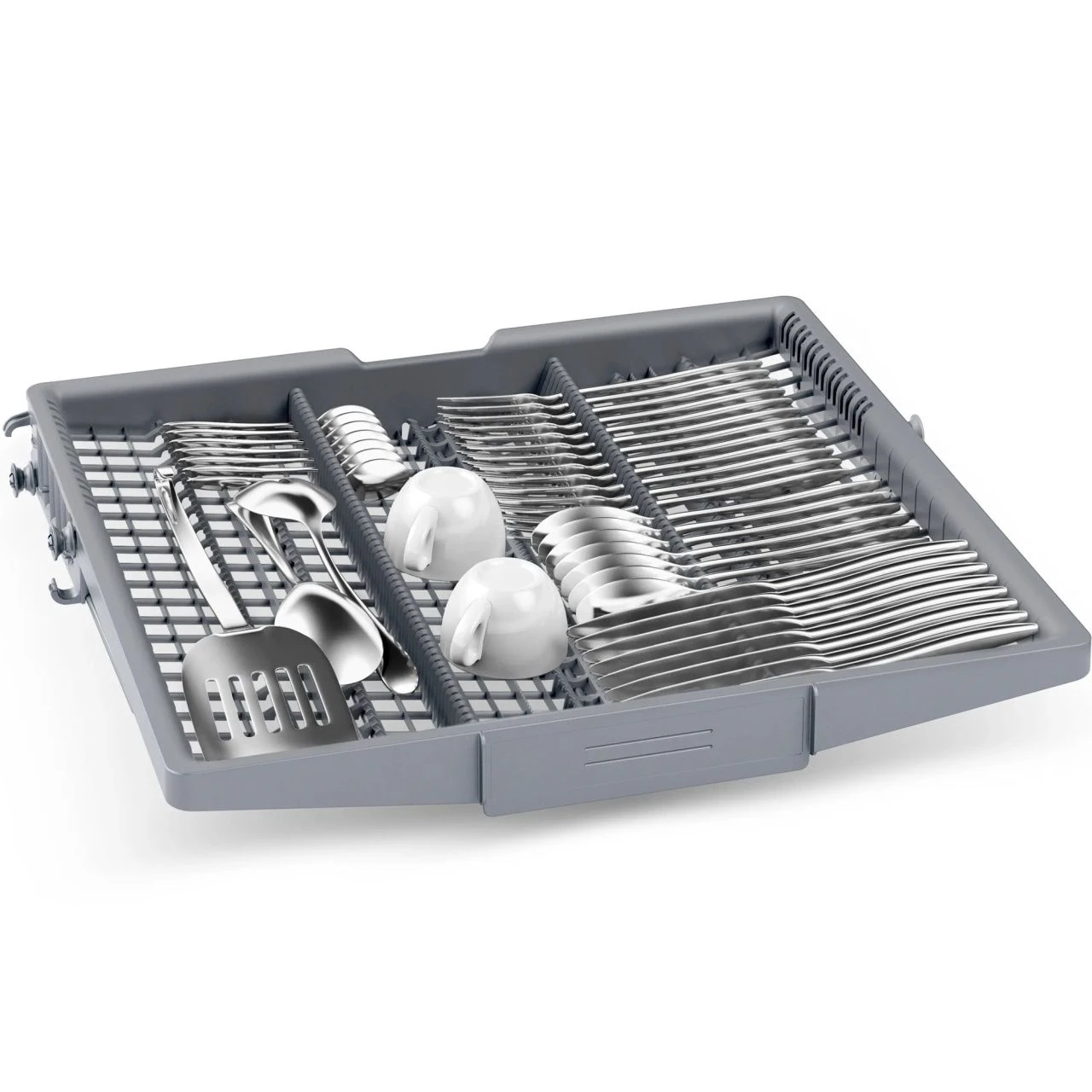 Посудомоечная машина Bosch SMP6EMW86Q рассчитана на 13 комплектов посуды, что позволяет загружать большое количество тарелок, кастрюль и столовых приборов за один цикл. Это особенно удобно для семей или компаний, где требуется мыть много посуды за раз.