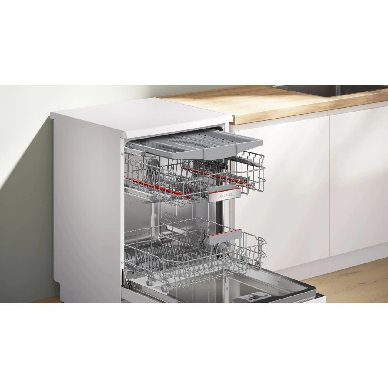 Модель отличается продуманными функциями для удобства и безопасности: самоочистка фильтра избавляет от необходимости ручной чистки, AquaSensor автоматически определяет степень загрязнённости воды и корректирует расход ресурсов, а дисплей и поддержка Wi-Fi позволяют легко управлять машиной и контролировать процесс мойки даже удалённо. Отсрочка запуска, 3 корзины для удобного размещения посуды, полная защита AquaStop от протечек и энергоэффективность класса A делают эту модель надёжной, экономичной и удобной в эксплуатации. Технологии Heat exchanger + drying assist обеспечивают отличное высушивание посуды без разводов.