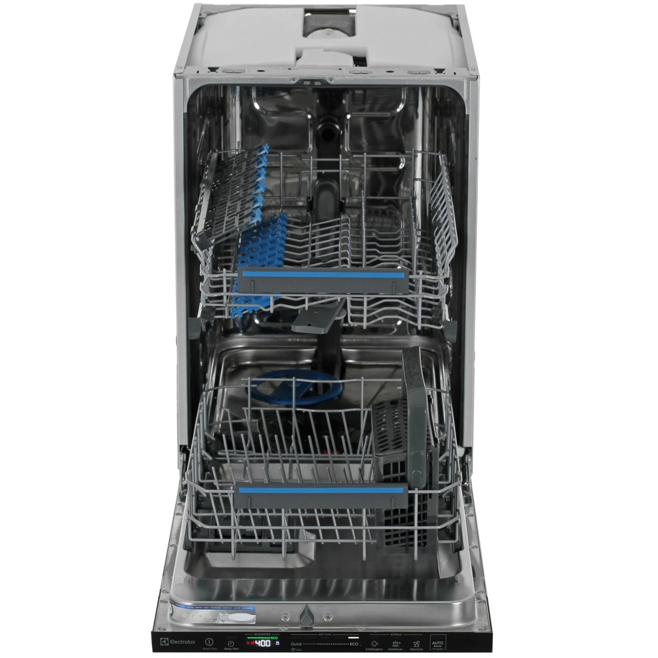Встраиваемая посудомоечная машина Electrolux EEG62300L представляет собой стильное узкое решение в чёрном исполнении. Благодаря компактным размерам (44,6×55×82 см) устройство идеально подходит для установки даже на небольшой кухне, не занимая много пространства.