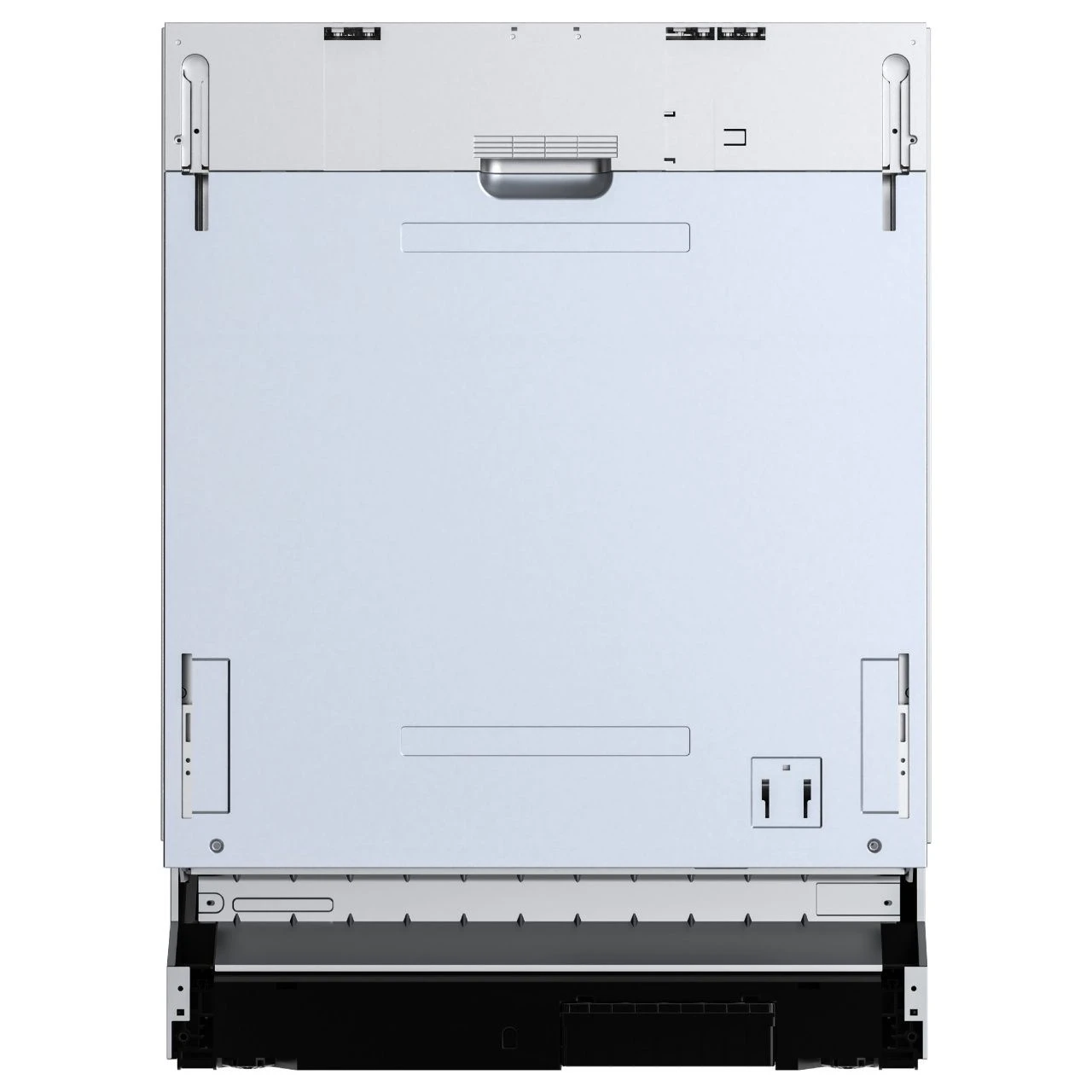 Корпус полноразмерного устройства оснащён регулируемыми ножками, что облегчает монтаж в нише 820–870×600×570 мм. Габариты составляют 815–865×598×550 мм при массе 38 кг, а глубина открытой двери обеспечивает удобный доступ к внутреннему пространству. Вместимость достигает 14 комплектов посуды, что делает аппарат отличным решением для семей и активных хозяек.