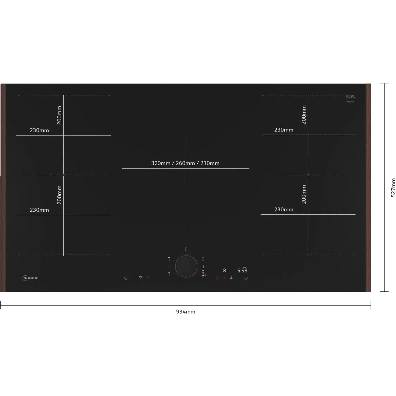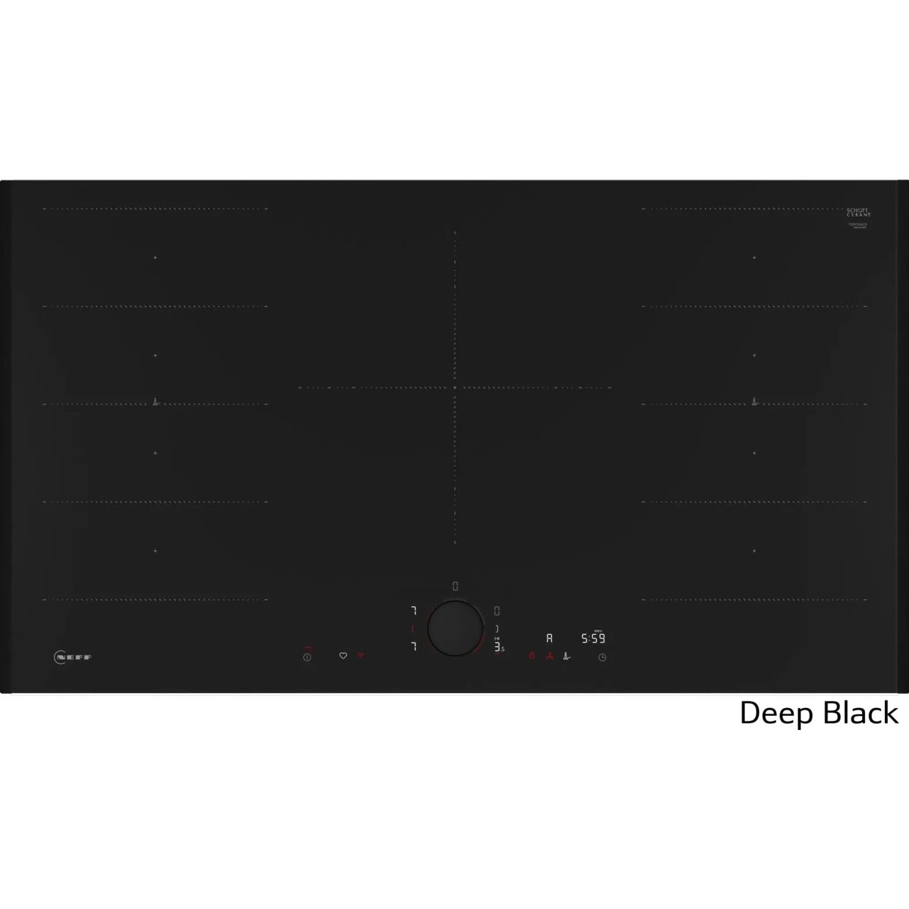 Дизайн варочной поверхности выполнен в стиле NEFF – минималистичный черный цвет, закаленное стекло и отсутствие выступающих элементов делают ее гармоничным дополнением любой кухни.