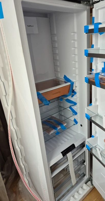 Система обдува отлично распределяет холод, нет такого, что у стенки продукты ледяные, а на дверце теплые. При этом работает он практически бесшумно, что критично для встраиваемой техники в кухне-гостиной. Порадовала и индикация: если неплотно закрыл дверь, он сразу подает сигнал. В целом, холодильник полностью оправдывает свою стоимость качеством охлаждения и продуманностью каждой детали.