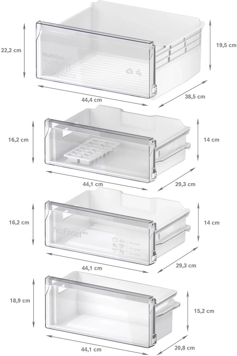 Наполнение холодильной камеры5 х полок, в т.ч. 4-регулируемые по высоте, 1 х ящик, 3 х лотка для яиц