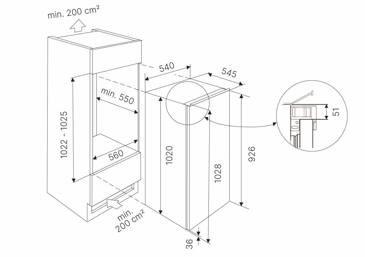 Размер ниши для встраивания1022/560/560